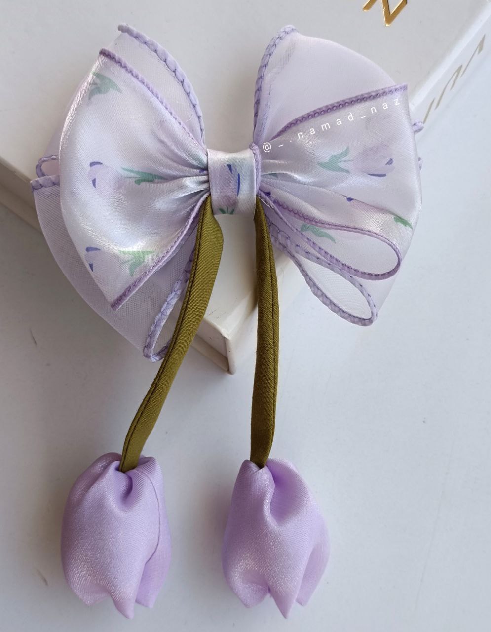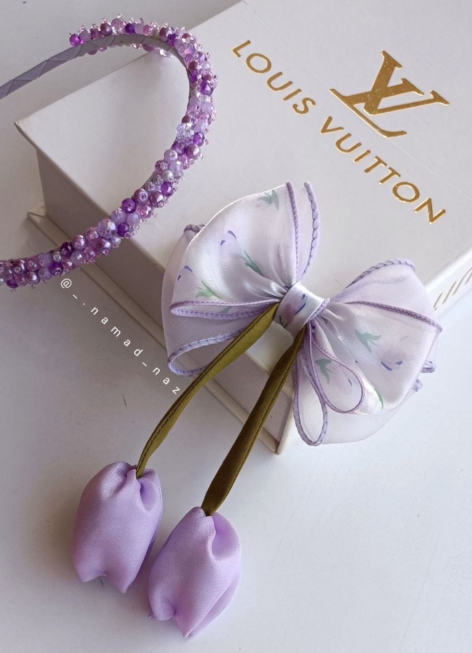 گیره حریر پاپیونی با آویز لاله
