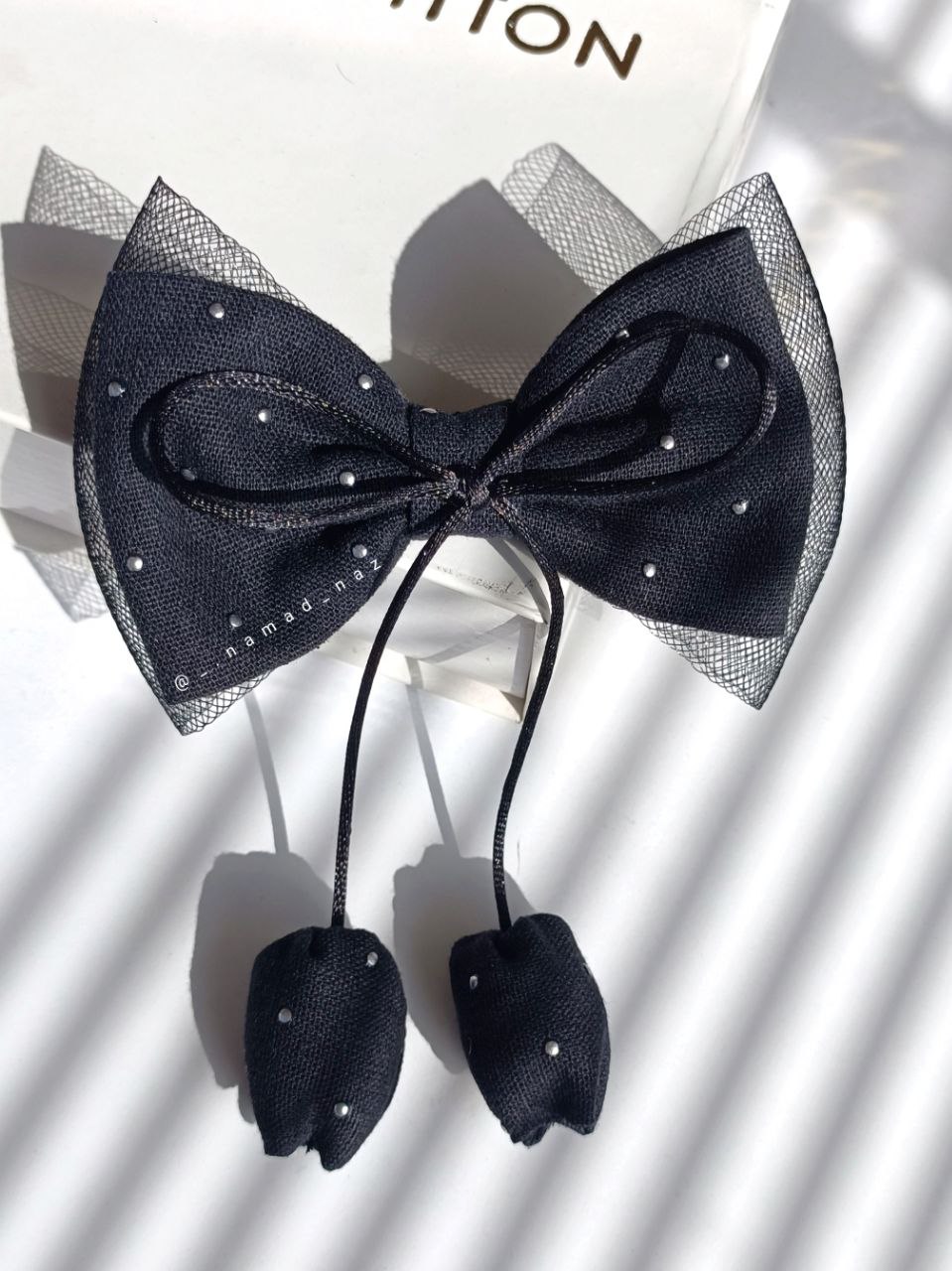 گیره پاپیونی پارچه ای مشکی با آویز لاله