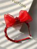 تل جواهردوزی کریستالی قرمز یلدایی با پاپیون حریر و مرکز جواهردوزی